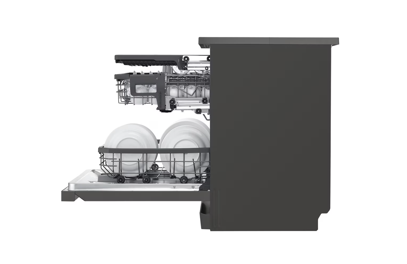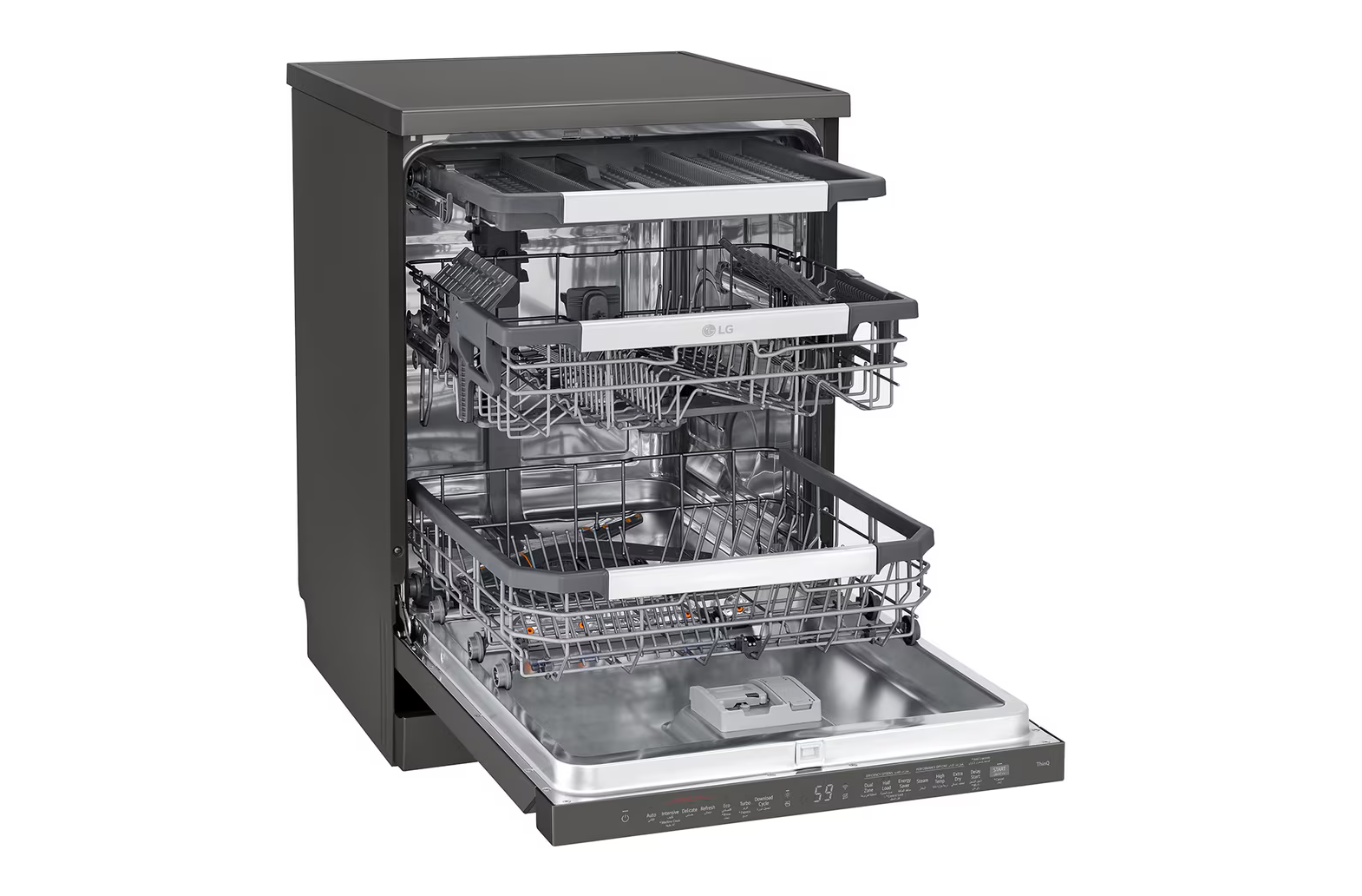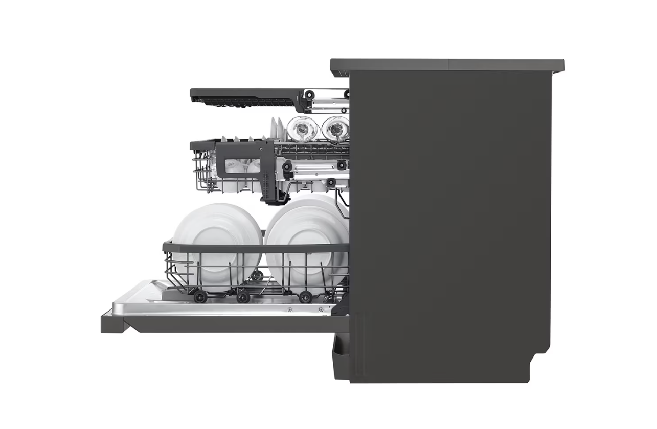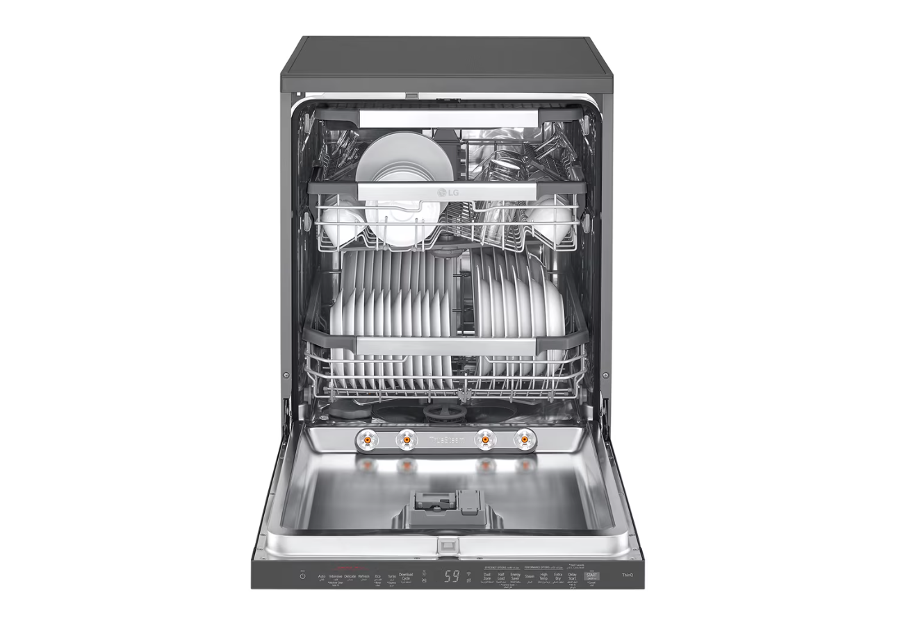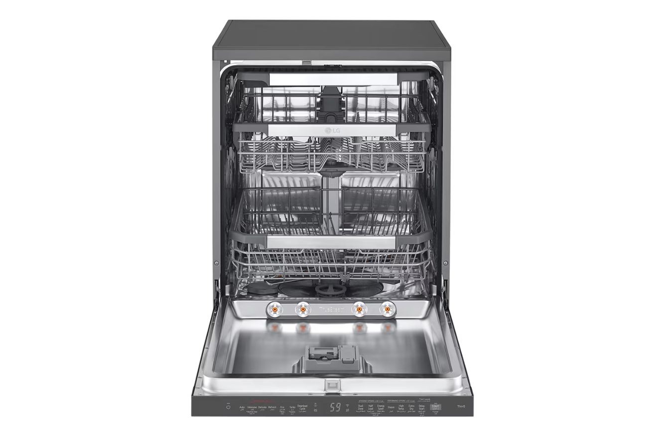 • LG 14 Place Setting TrueSteam, QuadWash, EasyRack Plus, Wi-Fi Free Standing Dishwasher (DFB424FP, Silver, Direct Drive Motor)