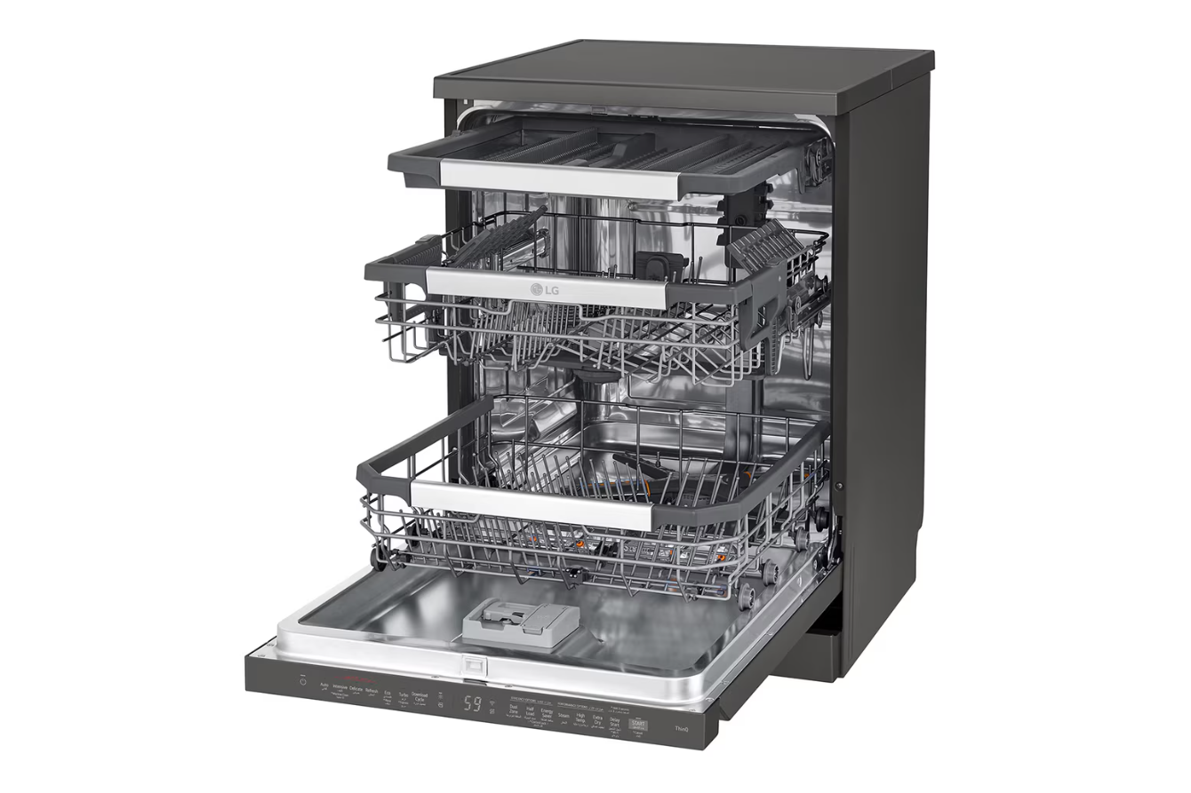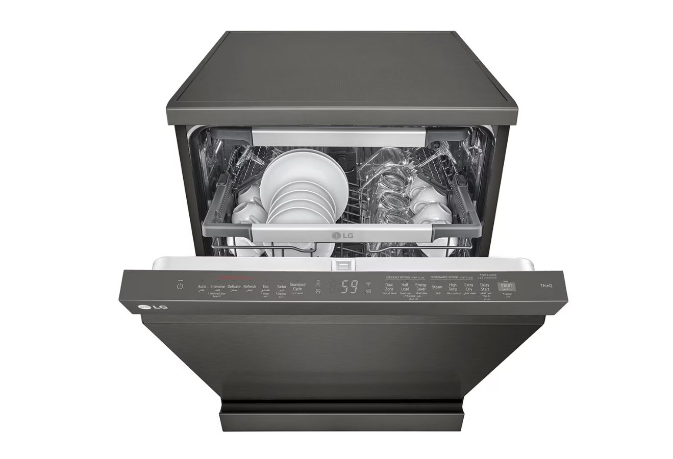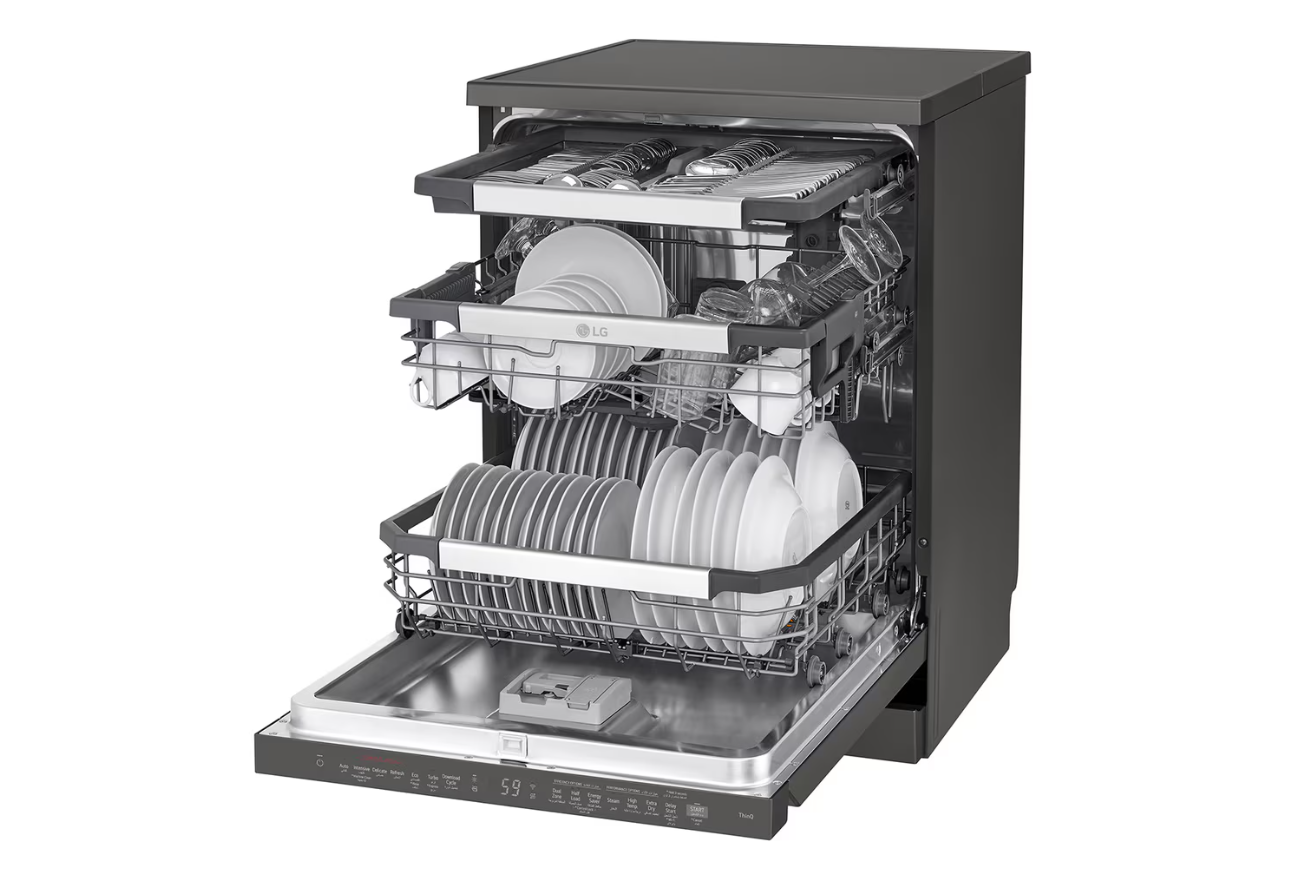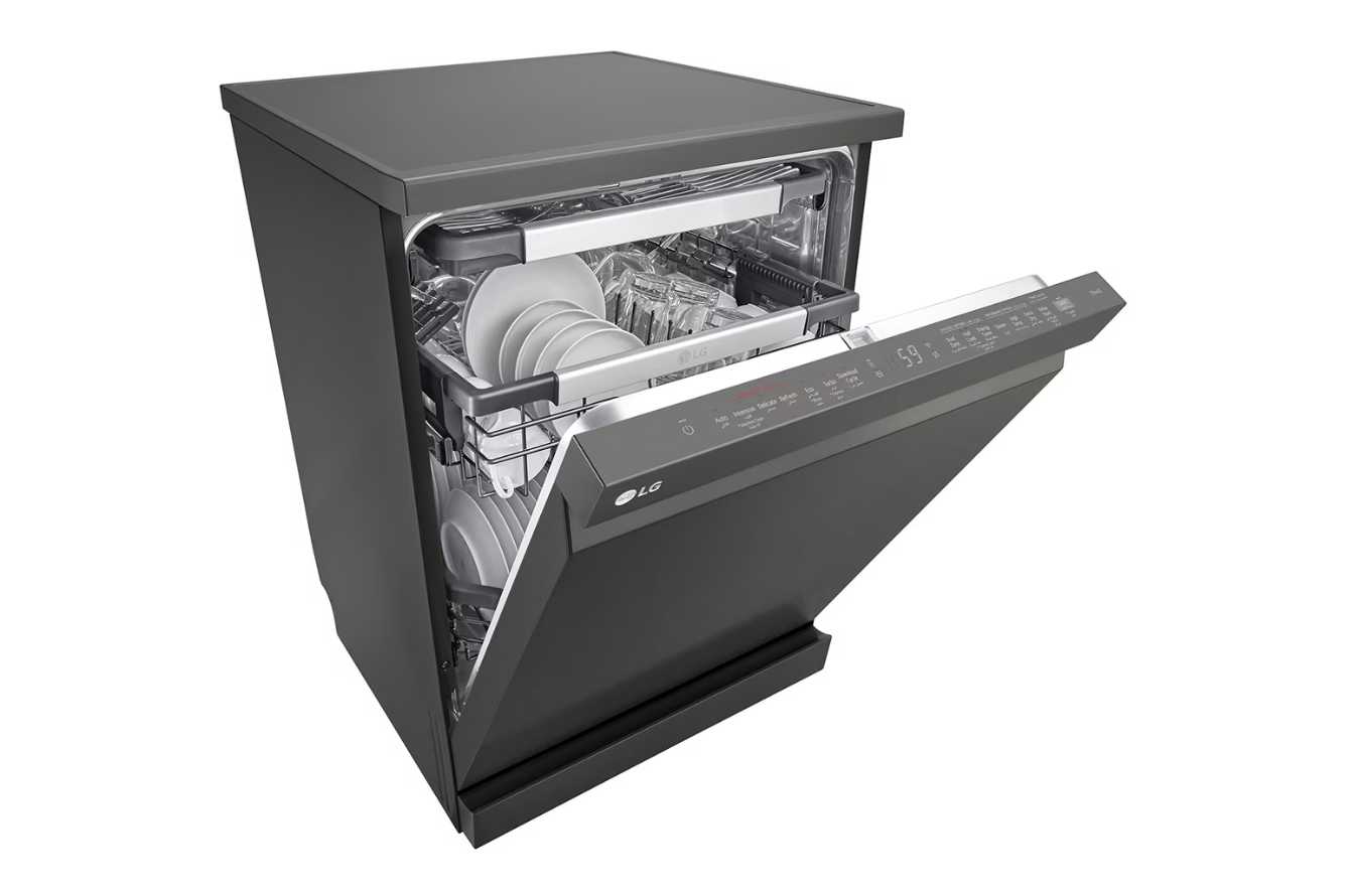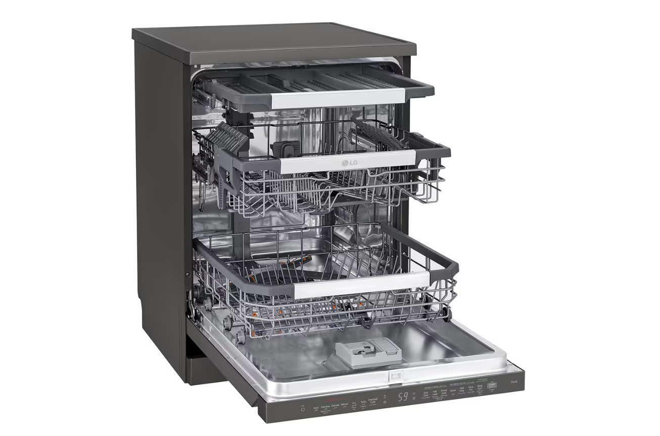 • LG 14 Place Setting TrueSteam, QuadWash, EasyRack Plus, Wi-Fi Free Standing Dishwasher (DFB424FP, Silver, Direct Drive Motor)