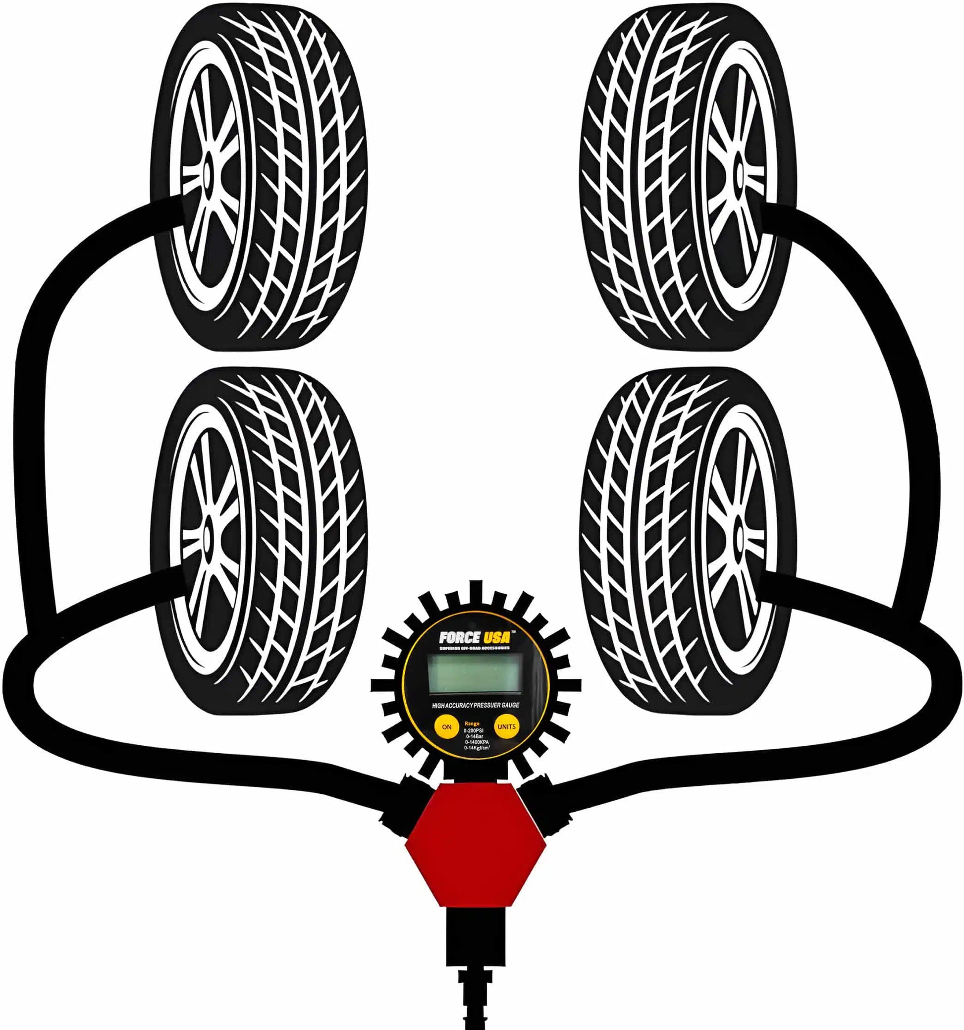 4 Way Tire Inflation Deflation System with Digital Tire Pressure Gauge