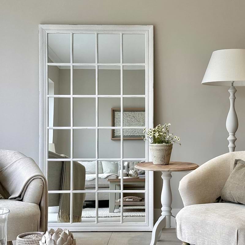 Sasha White Shabby Chic Full Length Window Mirror 180cm x 100cm