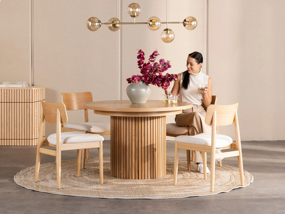 This round extendable dining table set is ready to tackle everything life throws its way. Durable and resistant to heat, stains, scratches and liquids
