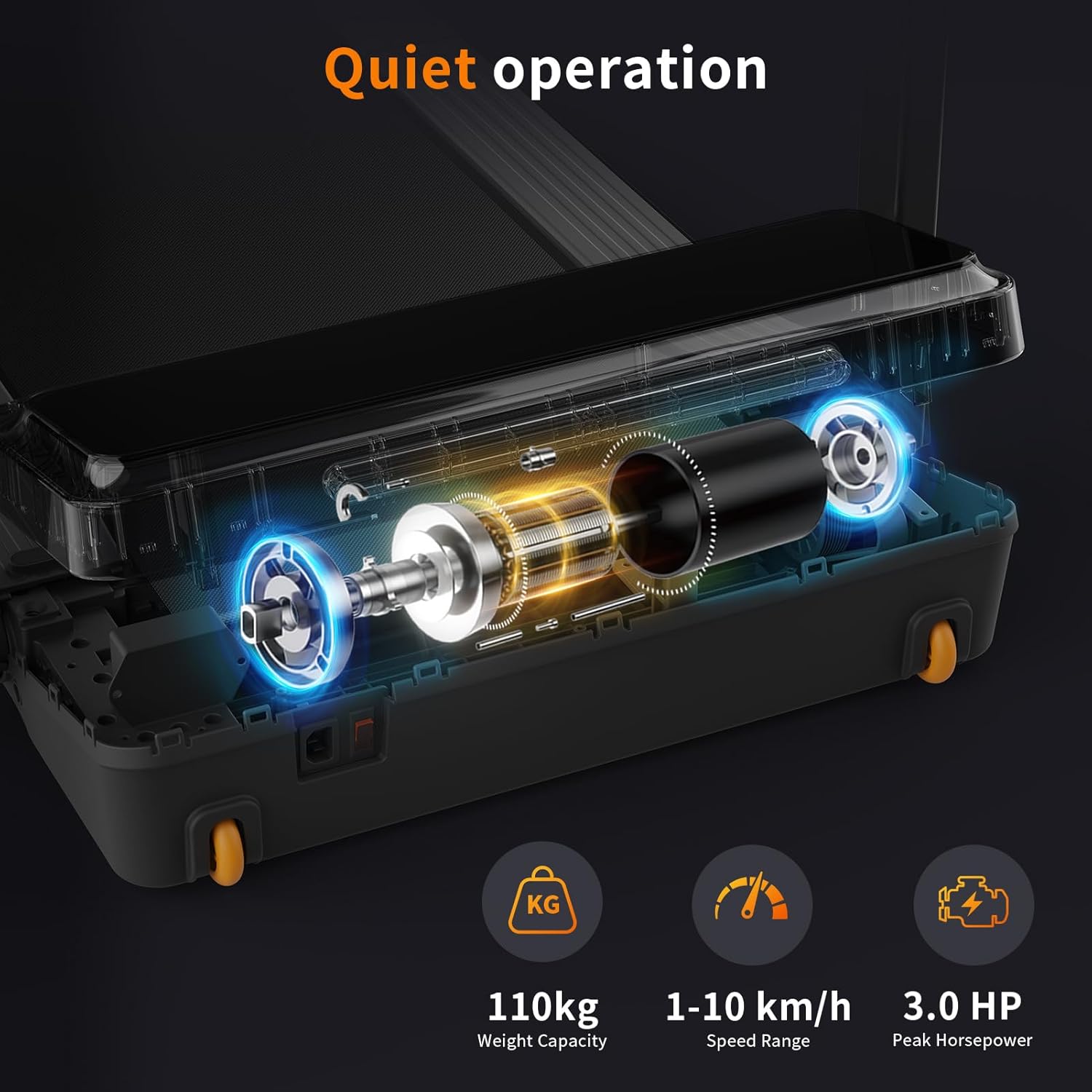 - Enhanced for Comfort and Convenience - Upgraded large wheels make moving the walking pad foldable over carpets or uneven surfaces effortless. The 40 cm x 120 cm running surface provides ample space, while the multi-layer shock-absorbing belt protects your joints for a smoother run. Noise-reduction technology makes it ideal for flats and shared living spaces.