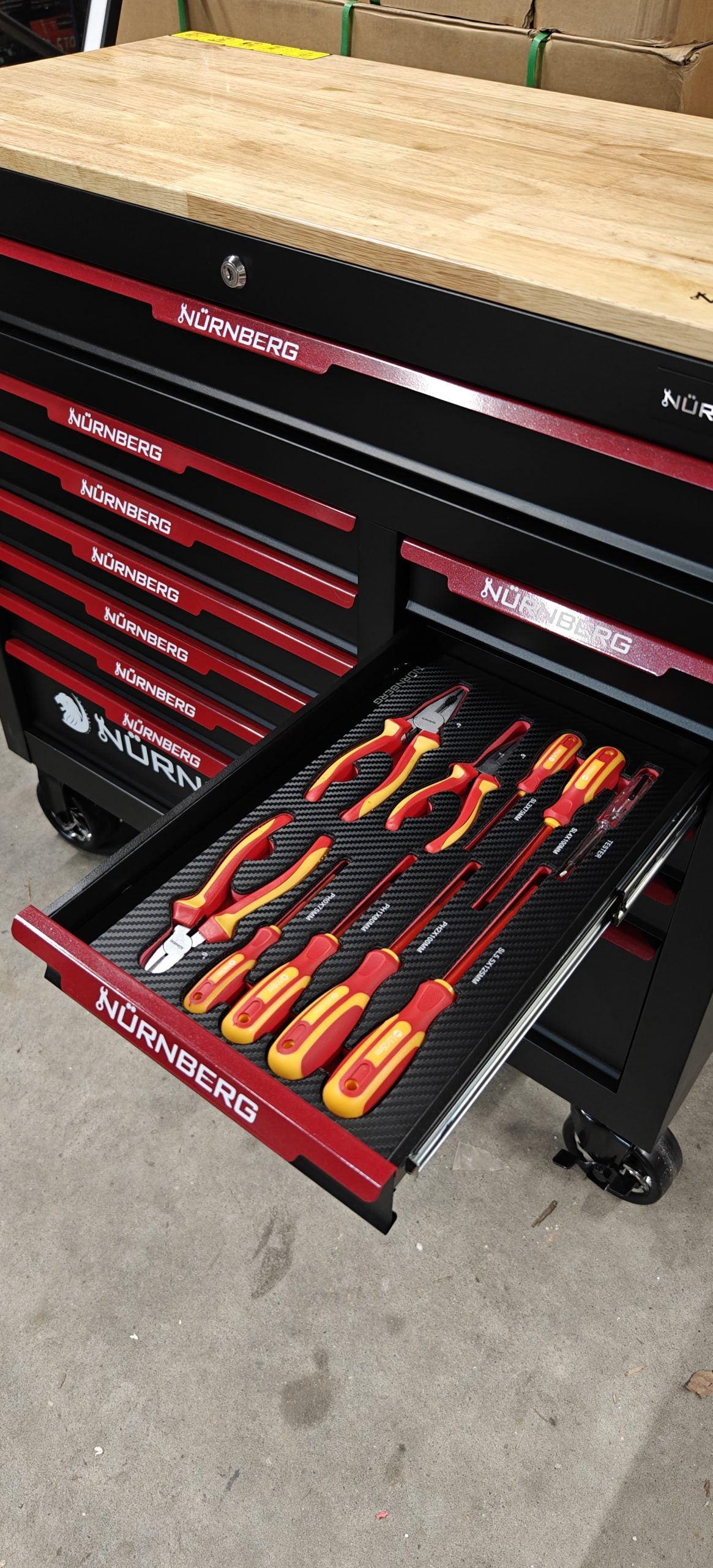 9th drawer: Assortment of insulated electrician screwdrivers (Phillips + flat) + insulated pliers