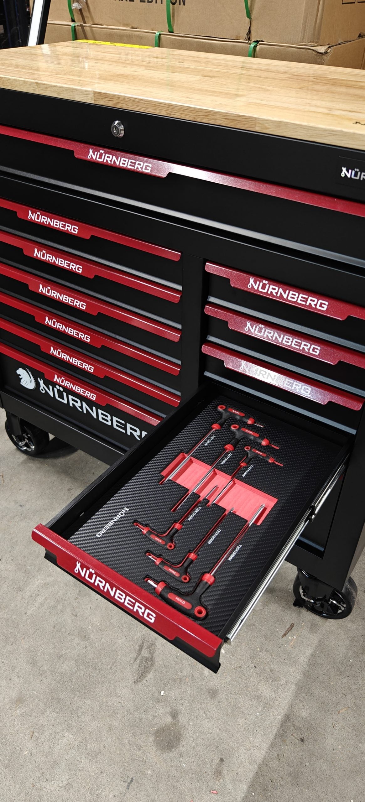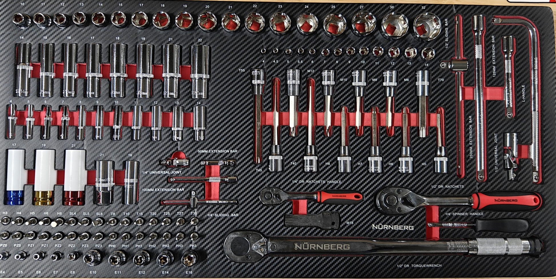 The modules are made of molded foam with a carbon finish for optimal tool organization and a cool look.